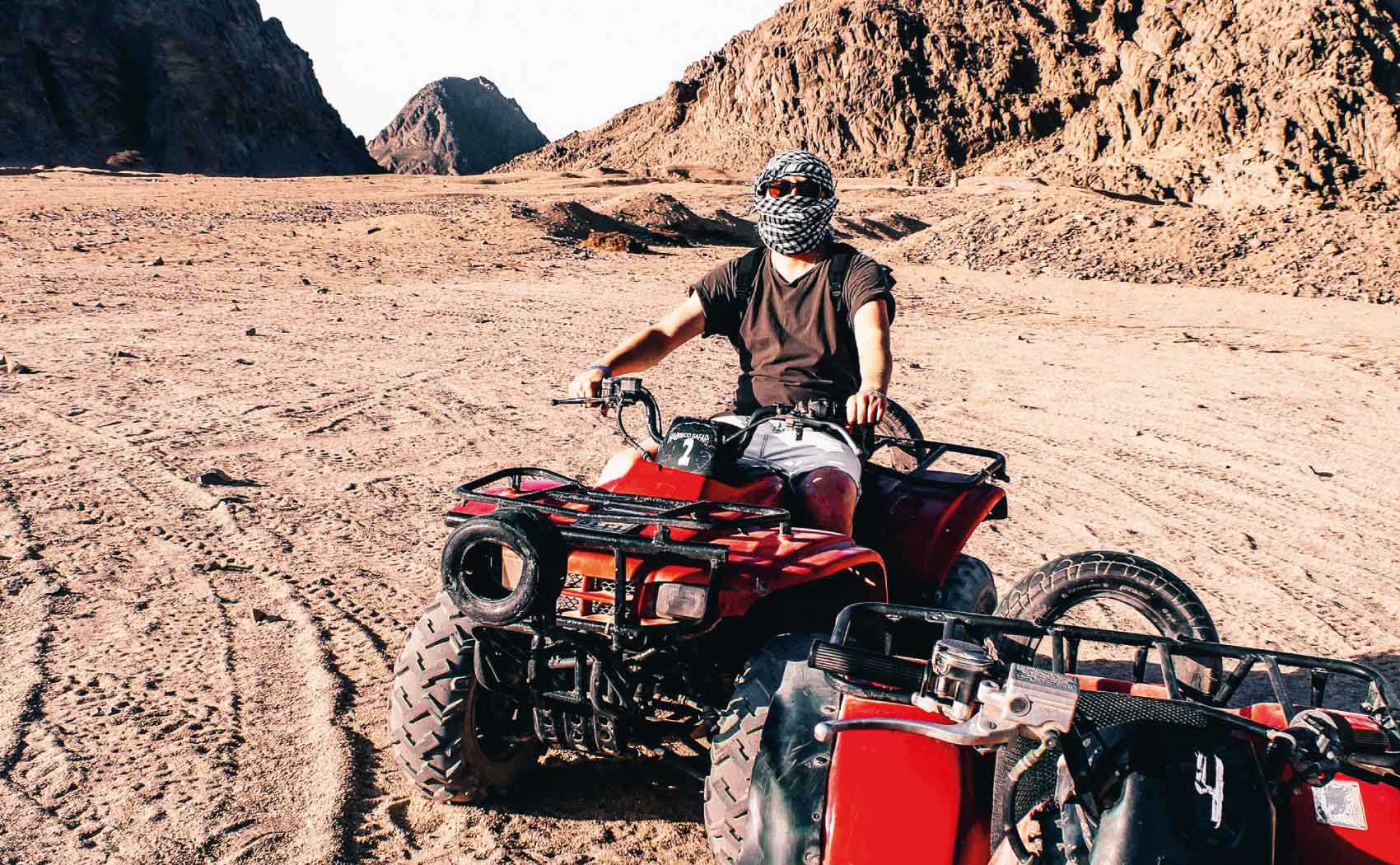 Raggiungeremo una tenda beduina dove saliremo prima in sella ai quad per una divertente motorata e dopo sui cammelli.