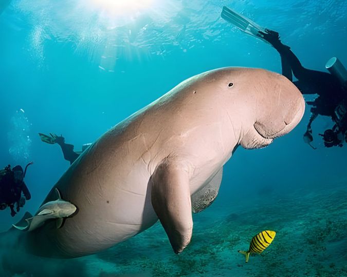Questa ampia baia naturale, facilmente accessibile dalla spiaggia, ospita un fondale sabbioso dove nuotano lentamente tartarughe marine giganti e, con un po’ di fortuna, il leggendario dugongo, il timido “lamantino del Mar Rosso”.