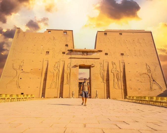 Tra colonnati eleganti e rilievi raffinati, il tempio racconta i miti di Osiride, Horus e delle grandi triadi divine che hanno plasmato la spiritualità dell’antico Egitto.